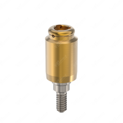 The Compatible Locator® Abutment of Gt-Medical is made of Titanium Grade 5 with a TIN finish to prevent bacterial plaque adhesion and ensure optimal sliding with the retention pack.