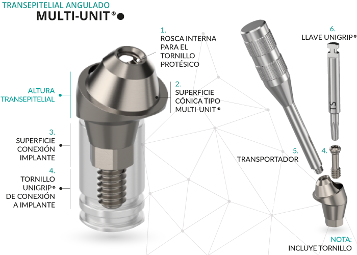 La unión del transepitelial con la estructura protésica se realiza mediante el tornillo de Multi-Unit®.