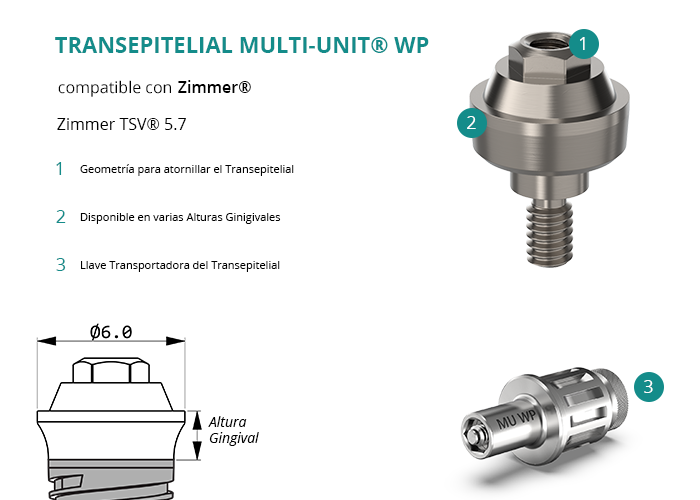 Transepitelial Multi-Unit® WP compatible con Zimmer® Zimmer TSV® 5.7