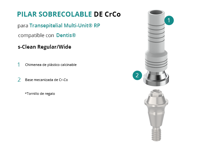 Pilar Sobrecolable de CrCo para Transepitelial Multi-Unit® RP compatible con Dentis® s-Clean Regular/Wide